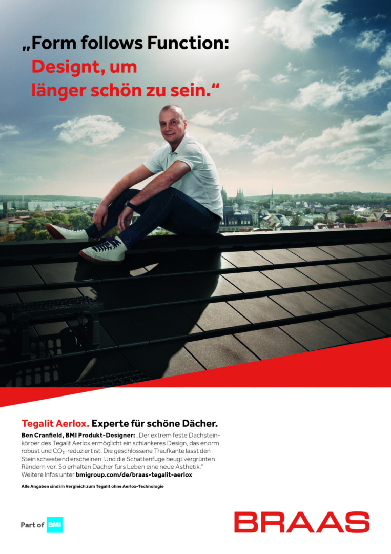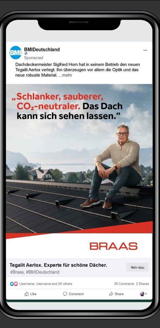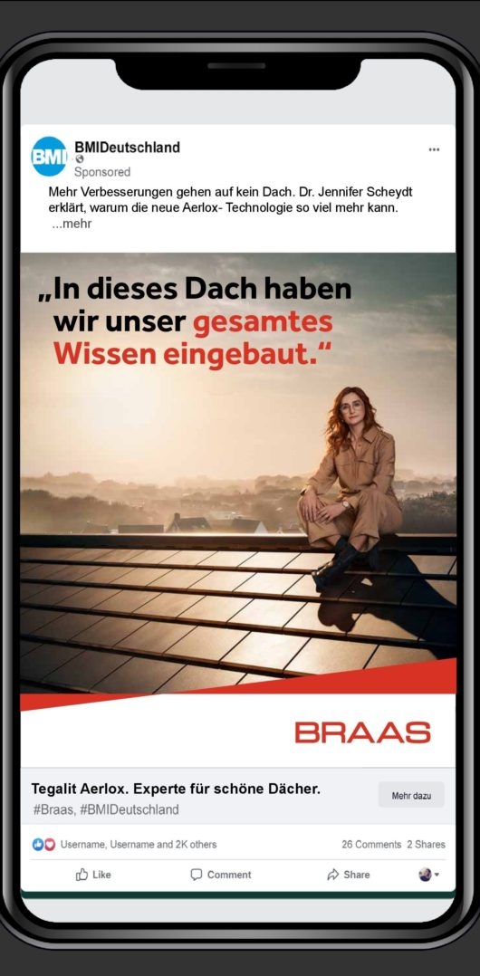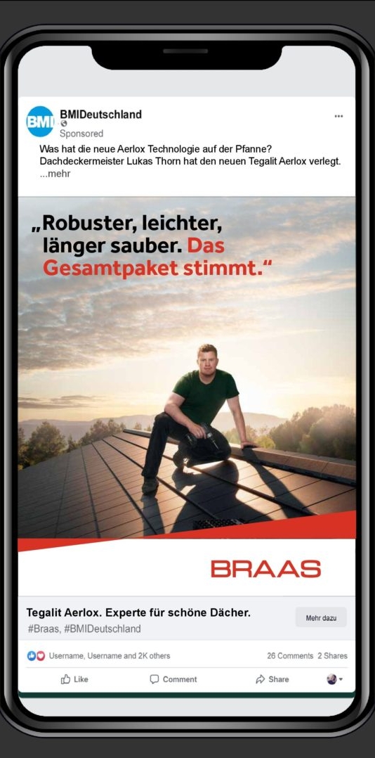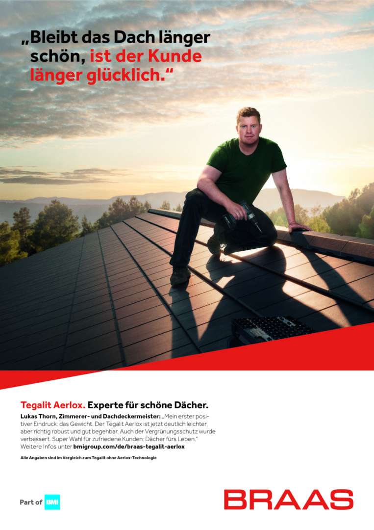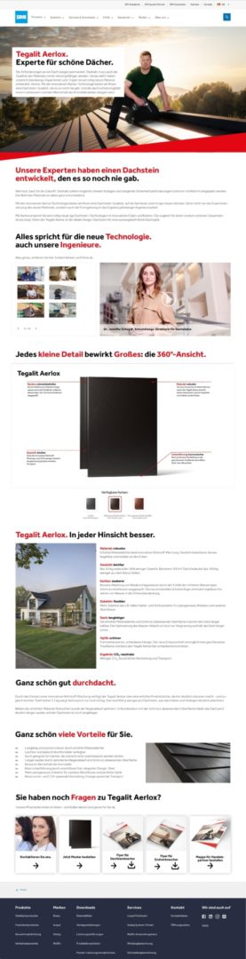 360 Grad-Kampagne mit Interviews (Von Designer über Ingenieur bis Dachhandwerker), Anzeigen, Ads und Ladingpage mit interaktiver 360 Gradansicht des Dachsteins und Erklärung seiner Features.