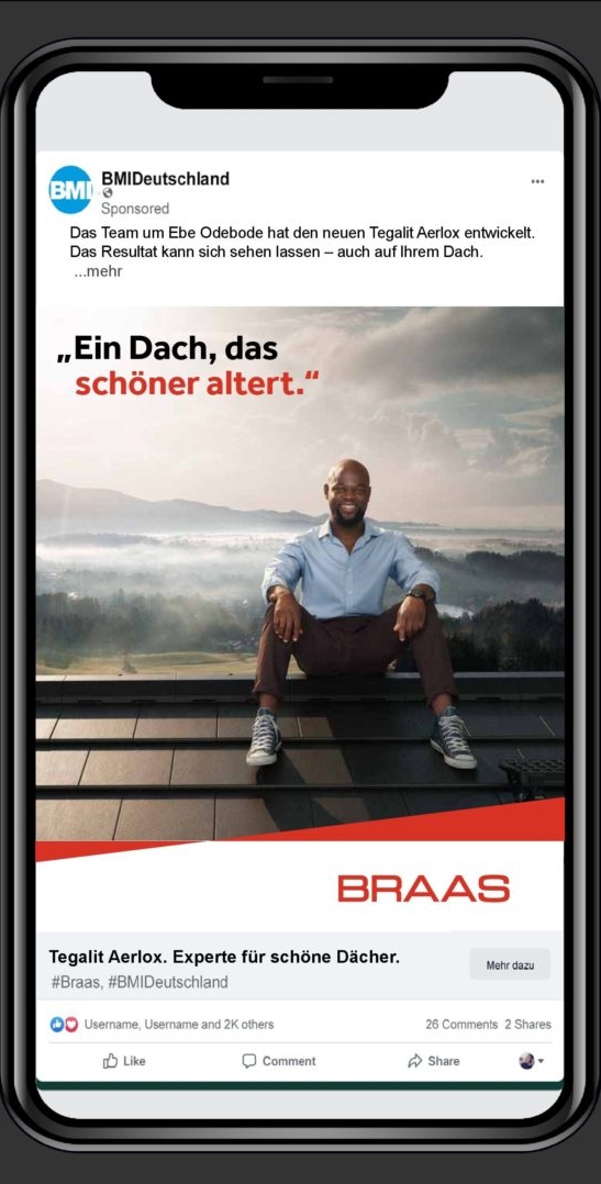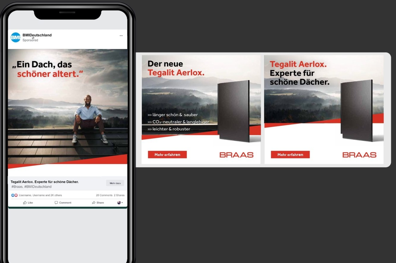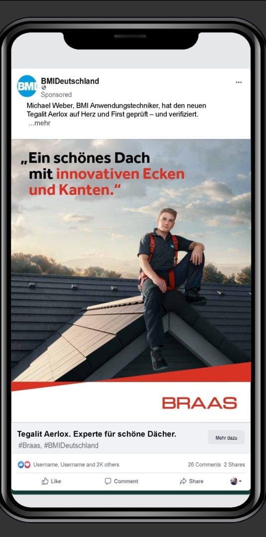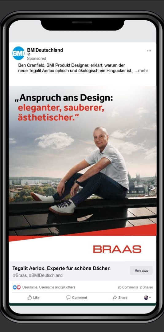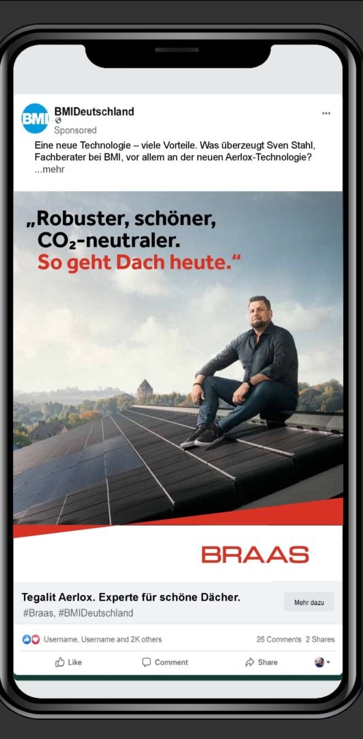 360 Grad-Kampagne mit Interviews (Von Designer über Ingenieur bis Dachhandwerker), Anzeigen, Ads und Ladingpage mit interaktiver 360 Gradansicht des Dachsteins und Erklärung seiner Features.
